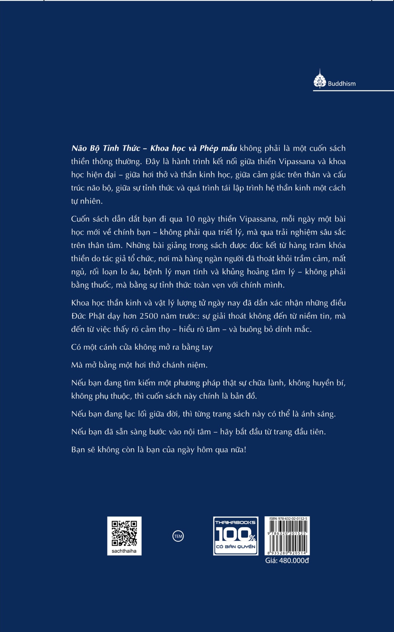 [ThaiHaBooks]: Khi cầm cuốn sách này trên tay, có lẽ bạn đang mang trong lòng một câu hỏi lớn, một nỗi khát khao mà lý trí không thể giải đáp còn lời nói dường như không đủ sức chạm tới. Có thể bạn đang đối mặt với nỗi đau thể chất – những cơn đau nhức dai dẳng, những bệnh tật kéo dài mà y học chưa tìm ra cách chữa khỏi hoàn toàn. Hoặc có lẽ đó là nỗi đau tinh thần – sự bất an, trầm cảm hay cảm giác lạc lõng giữa dòng đời hối hả. Có khi, bạn chỉ đơn giản là tìm kiếm một khoảnh khắc yên bình, một khoảng lặng để thở giữa những ồn ào của cuộc sống hiện đại. Dù lý do là gì thì cuốn sách này không phải là một lời hứa suông, không phải là một giáo điều khô khan mà là một hành trình – hành trình của chính bạn, được dẫn dắt bởi những trải nghiệm thực tế và khoa học mà tác giả đã khám phá và chứng ngộ qua nhiều năm tháng. Cuốn sách “Não Bộ tỉnh thức – Khoa học và Phép màu” không phải là một cuốn sách thiền thông thường. Đây là hành trình kết nối giữa thiền Vipassana và khoa học hiện đại – giữa hơi thở và thần kinh học, giữa cảm giác trên thân và cấu trúc não bộ, giữa sự tỉnh thức và quá trình tái lập trình hệ thần kinh một cách tự nhiên.
