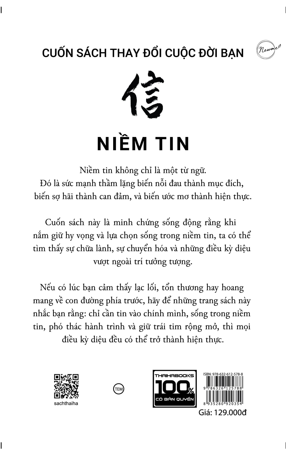 [ThaiHaBooks]: Cuốn sách “Niềm Tin – Chìa khóa dẫn tới điều kỳ diệu” không chỉ là câu chuyện về cuộc đời tác giả Nhan Thanh, mà còn là một hành trình của nghị lực, niềm tin và lòng dũng cảm để kiến tạo một cuộc sống ý nghĩa. Qua những trang sách, tác giả chia sẻ một chân lý sâu sắc rằng cuộc sống bên ngoài chỉ là sự phản chiếu của thế giới nội tâm, và "bạn là những gì bạn nghĩ".