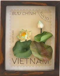 Vật liệu: Khung gỗ thông sơn chống ẩm, hậu làm từ giấy bọc màng chống ẩm, kính trong suốt, giấy, keo dán.